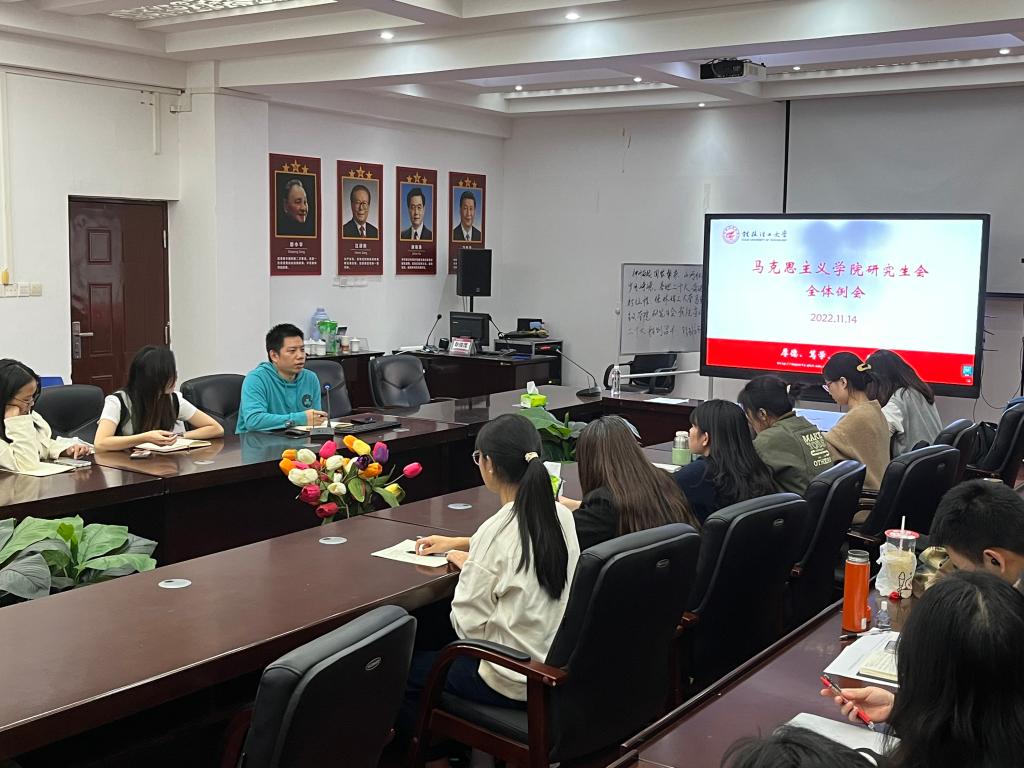 会上,韦华泽代表主席团对开学以来干事们在各项工作中的辛勤付出表示感谢,主动关心干事们的学习、工作和生活,为干事们解答了一些个人成长发展过程中的疑虑,同时也阐释了研究生会组织的宗旨,全心全意为师生服务,积极发挥着全面提高研究生的综合素质、丰富研究生的课余生活、维护研究生合法权益的作用。韦华泽还强调要重视纪律问题,规范学生干事参加活动的出勤情况。最后,研究生会主席团针对自身工作中存在的不足进行反思,虚心向大家寻求建议,以期让研究生会变得更好。