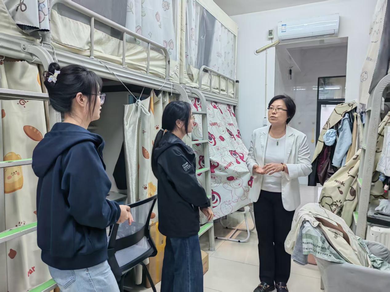 走访过程中,梁英与同学们面对面亲切交流、心贴心沟通,现场氛围温馨融洽。她详细询问同学们的学习生活状况、假期出行计划和留校安排,耐心倾听大家在生活中遇到的实际困难与诉求,对同学们提出的疑问逐一耐心解答,对可现场协调解决的问题当场回应、快速部署,无法即时办结的逐一记录备案,明确后续跟进闭环落实。同时,结合假期特点与春季安全风险,梁英对同学们进行了全方位安全叮嘱,重点强调了出行安全、消防安全、财产安全和人身安全,提醒同学们出行前合理规划行程,选择正规交通工具,避开高峰时段和危险区域,主动向家长、辅导员报备出行去向与返程时间,保持通讯畅通;离校前务必关闭宿舍电源、水源,拔掉电器插头,妥善保管贵重物品,锁好门窗,杜绝私拉乱接电线、使用大功率违规电器等行为;留校学生要严格遵守学校假期管理规定,保持宿舍整洁,不晚归、不夜不归宿,警惕电信网络诈骗,遇突发情况第一时间向学院求助。