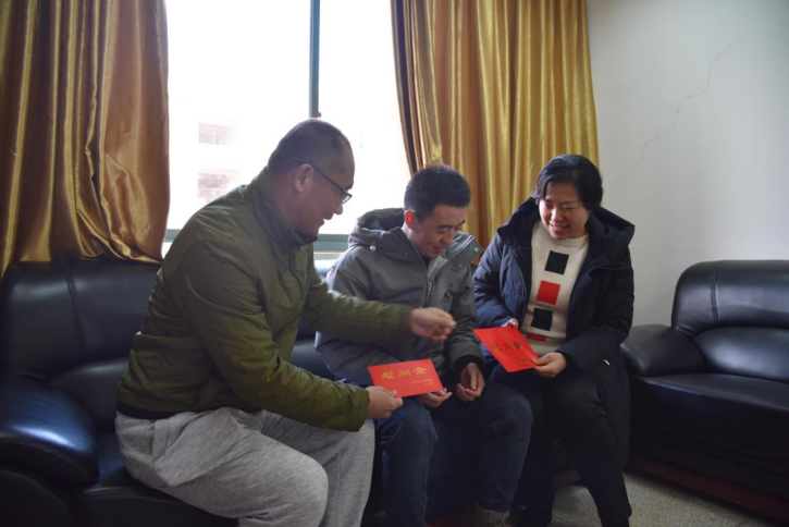 1月11日下午,马院党委书记、工会主席耿俊茂、院长梁英看望慰问了太阳成官网困难职工孙守湖,向他致以节日的问候,并送上慰问金。